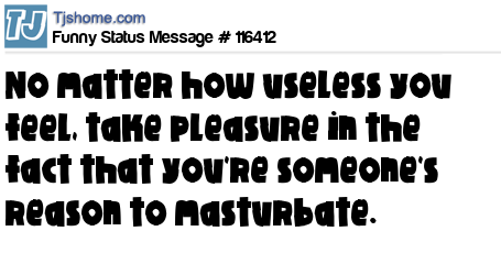 X says No matter how useless you feel, take pleasure in the fact that you're someone's reason to masturbate.