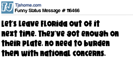 X is Let's leave Florida out of it next time. They've got enough on their plate, no need to burden them with national concerns.