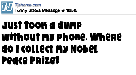 X says Just took a dump without my phone. Where do I collect my Nobel Peace Prize?