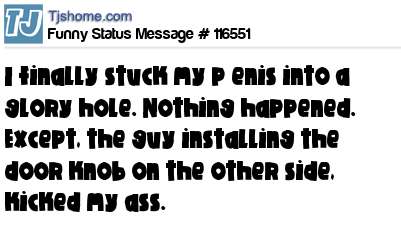 X says I finally stuck my p enis into a glory hole. Nothing happened. Except, the guy installing the door knob on the other side, kicked my ass.