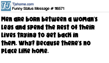 - # 45748 Men are born between a woman's legs and spend the rest of their lives trying to get back in between them, Because theres no place like home.
