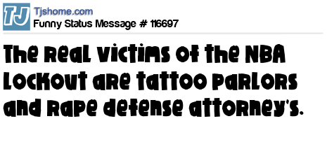 X says The real victims of the NBA lockout are tattoo parlors and rape defense attorney's.