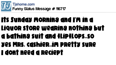 X is its Sunday morning and I'm in a liquor store wearing nothing but a bathing suit and flipflops..so yes Mrs. cashier..im pretty sure I dont need a reciept
