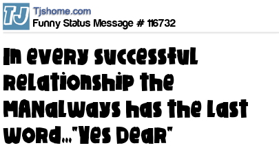 - # 32728 In every successful relationship the MAN always has the last word - "Yes Dear."