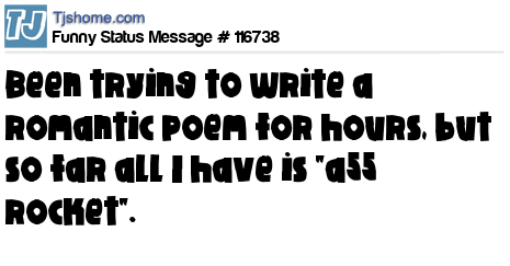 X is Been trying to write a romantic poem for hours, but so far all I have is "a55 rocket".