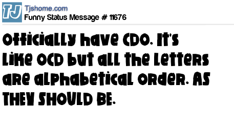 - # 82163 I have CDO. - It's like OCD but all of the letters are in alphabetical order, AS THEY SHOULD BE!