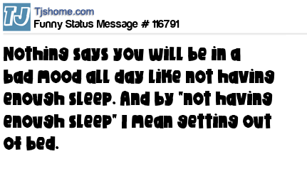 X says Nothing says you will be in a bad mood all day like not having enough sleep. And by "not having enough sleep" I mean getting out of bed.