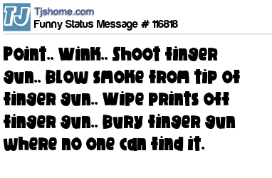 X Point.. Wink.. Shoot finger gun.. Blow smoke from tip of finger gun.. Wipe prints off finger gun.. Bury finger gun where no one can find it.