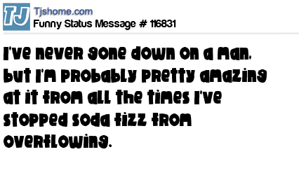 X is I've never gone down on a man, but I'm probably pretty amazing at it from all the times I've stopped soda fizz from overflowing.