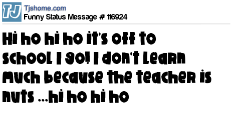 X says hi ho hi ho it's off to school I go! I don't learn much because the teacher is nuts ...hi ho hi ho