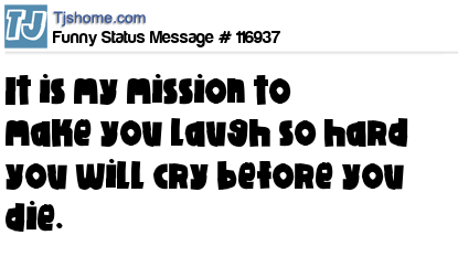 X says It is my mission to make you laugh so hard you will cry before you die.