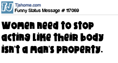 X says Women need to stop acting like their body isn't a man's property.