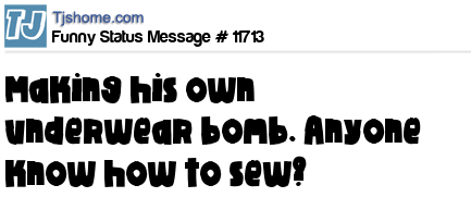 - # 11747 Remember when the terrorist had the bomb in his shoe? That's the reason why we've gotta take our shoes off at airport security now. This most recent terrorist had the bomb in his underwear. Enjoy your flights - I'm going commando now...