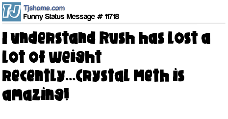 X says I understand Rush has lost a lot of weight recently...Crystal Meth is amazing!
