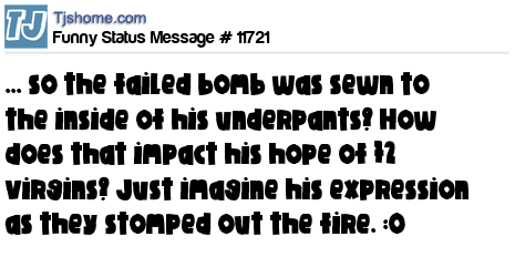 - # 12039 really doesn't get the underwear bomber...i mean even if the bomb works there are gonna be 72 very disappointed virgins