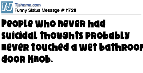 - # 155897 People who have never had a suicidal thought have probably never touched a wet public bathroom door knob.