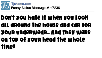 X Don't you hate it when you look all around the house and car for your underwear,,, And they were on top of your head the whole time?