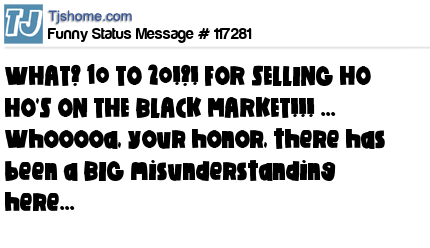 X WHAT? 10 TO 20!?! FOR SELLING HO HO'S ON THE BLACK MARKET!!! ... Whooooa, your honor, there has been a BIG misunderstanding here...