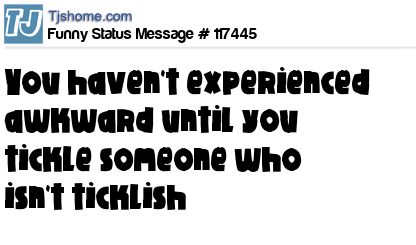 - # 114723 You haven't experienced awkwardness and felt like a complete idiot until you try to tickle someone who isn't ticklish.