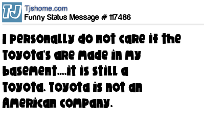 X says I personally do not care if the Toyota's are made in my basement….it is still a Toyota. Toyota is not an American company.