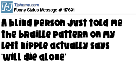 X says A blind person just told me the braille pattern on my left nipple actually says 'will die alone'
