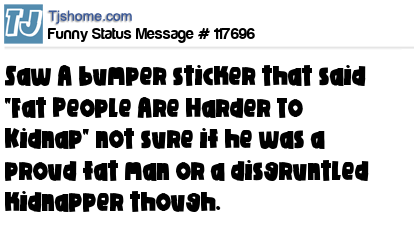 X says Saw A bumper sticker that said "Fat People Are Harder To Kidnap" not sure if he was a proud fat man or a disgruntled kidnapper though.