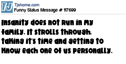 - # 193087 Insanity runs in my family..it practically gallops.