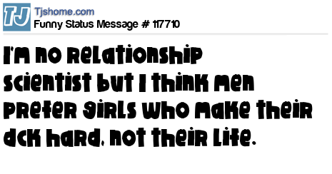 X I'm no relationship scientist but I think men prefer girls who make their dck hard, not their life.
