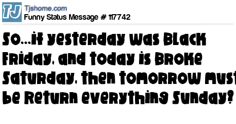 X says So...if yesterday was Black Friday, and today is Broke Saturday, then tomorrow must be Return everything Sunday?