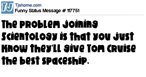 X says The problem joining Scientology is that you just know they'll give Tom Cruise the best spaceship.