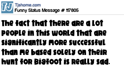 X The fact that there are a lot people in this world that are significantly more successful than me based solely on their hunt for Bigfoot is really sad.