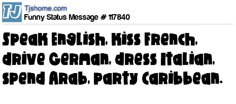 X Speak English, kiss French, drive German, dress Italian, spend Arab, party Caribbean.