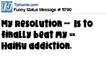 X says My resolution -- Is to finally beat my == Haiku addiction.