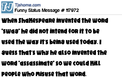 - # 76375 It's kind of funny that Shakespeare invented the word "swagger."