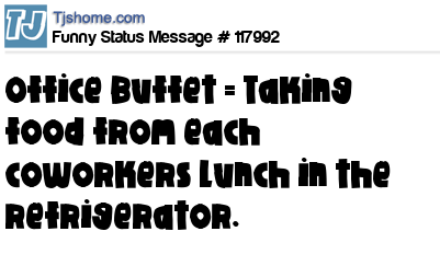 - # 155583 My coworkers will stand around confused during a fire drill but the office turns into the Hunger Games when there's lunch brought in for everyone