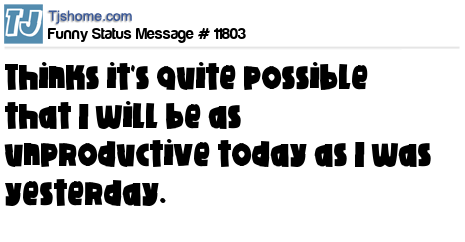 - # 11875 hinks it's quite possible that I will be as unproductive today as I was yesterday ..