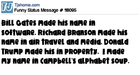 X Bill Gates made his name in software. Richard Branson made his name in air travel and media. Donald Trump made his in property. I made my name in Campbell's alphabet soup.