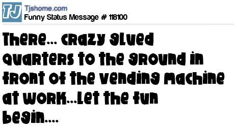 X There... crazy glued quarters to the ground in front of the vending machine at work...let the fun begin....
