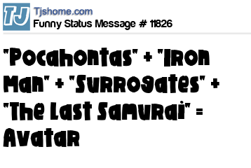 - # 79349 If pocahontas and the smurfs had babies, the result would be avatar...think about it