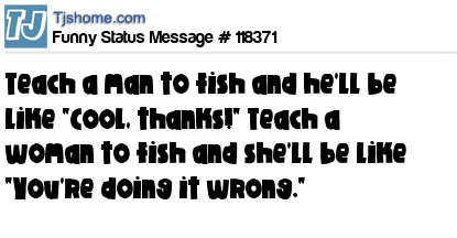 - # 95796 Give a man to fish, he'll eat for a day. Teach a man to fish, he'd stop after a day & be like "Screw that. It was way easier wen you guys just got me fish"