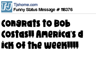 X says congrats to Bob Costas!! America's d ick of the week!!!!