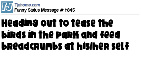 X is heading out to tease the birds in the park and feed breadcrumbs at his/her self