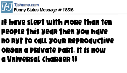 X says If have slept with more than ten people this year then you have no ryt to call your reproductive organ a private part. It is now a Universal Charger !!