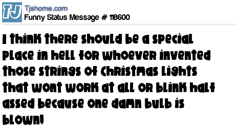 X says I think there should be a special place in hell for whoever invented those strings of Christmas lights that wont work at all or blink half assed because one damn bulb is blown!