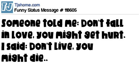X Someone told me: Don't fall in love, you might get hurt. I said: Don't live, you might die..