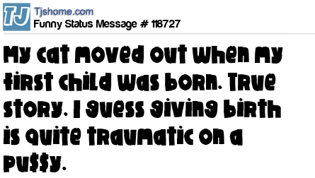 X says My cat moved out when my first child was born. True story. I guess giving birth is quite traumatic on a pu$$y.