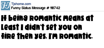 X says If being romantic means at least I didn't set you on fire then yes, I'm romantic.