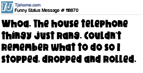 - # 70340 Whoa. The land-telephone appliance just rang. Couldn't remember what to do so I stopped, dropped, and rolled.