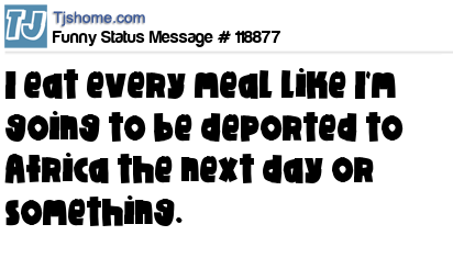 - # 125286 I eat every meal like I'm going to be deported to Ethopia the next day or something.