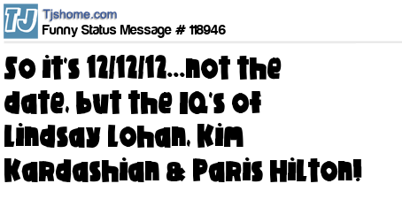 X So it's 12/12/12...not the date, but the IQ's of Lindsay Lohan, Kim Kardashian & Paris Hilton! ツ